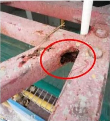 A. 附墙架锈蚀严重