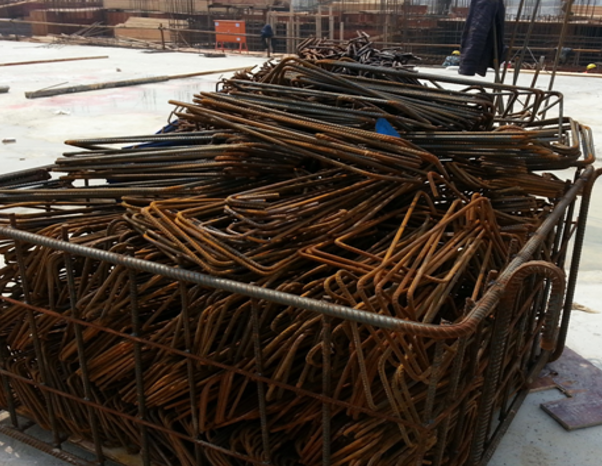 D. 钢管倚靠于外架放置(易滑倒伤人)