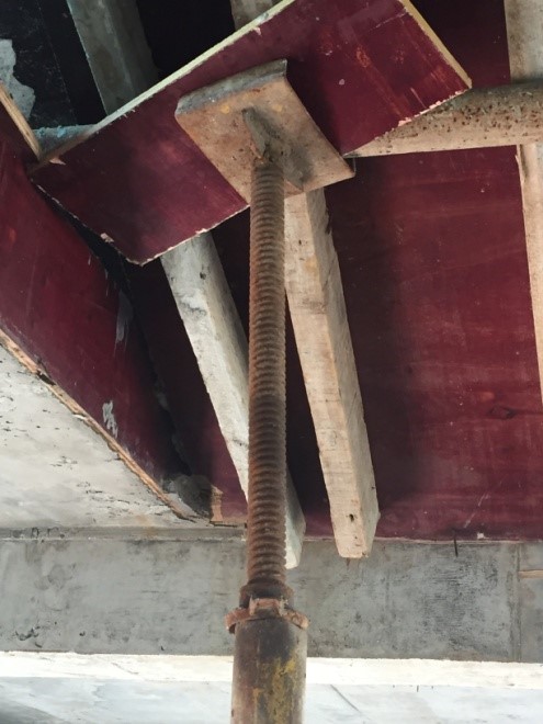 B. 顶托托板未托住木枋或钢管