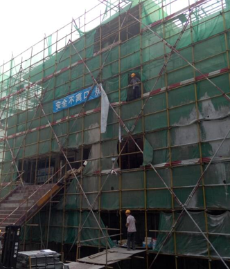 D. 钢管倚靠于外架放置(易滑倒伤人)