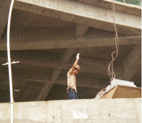 D. 图示作业人员未将安全带系挂在吊篮钢丝绳上