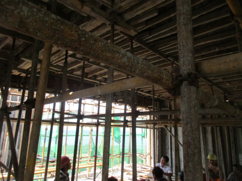 D. 悬挑工字钢梁于结构锚固点位置不正确