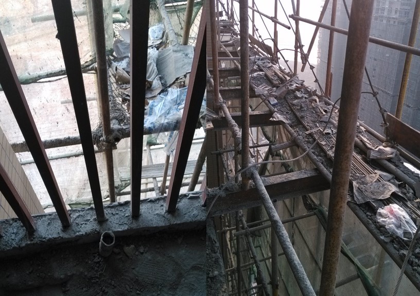 D. 外架竹跳板、兜网上堆放有大量杂物