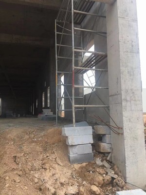 A. 操作架底部未处理平整,垫块使用脆性材料