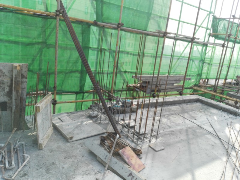 A. 钢筋违规斜靠在外架上