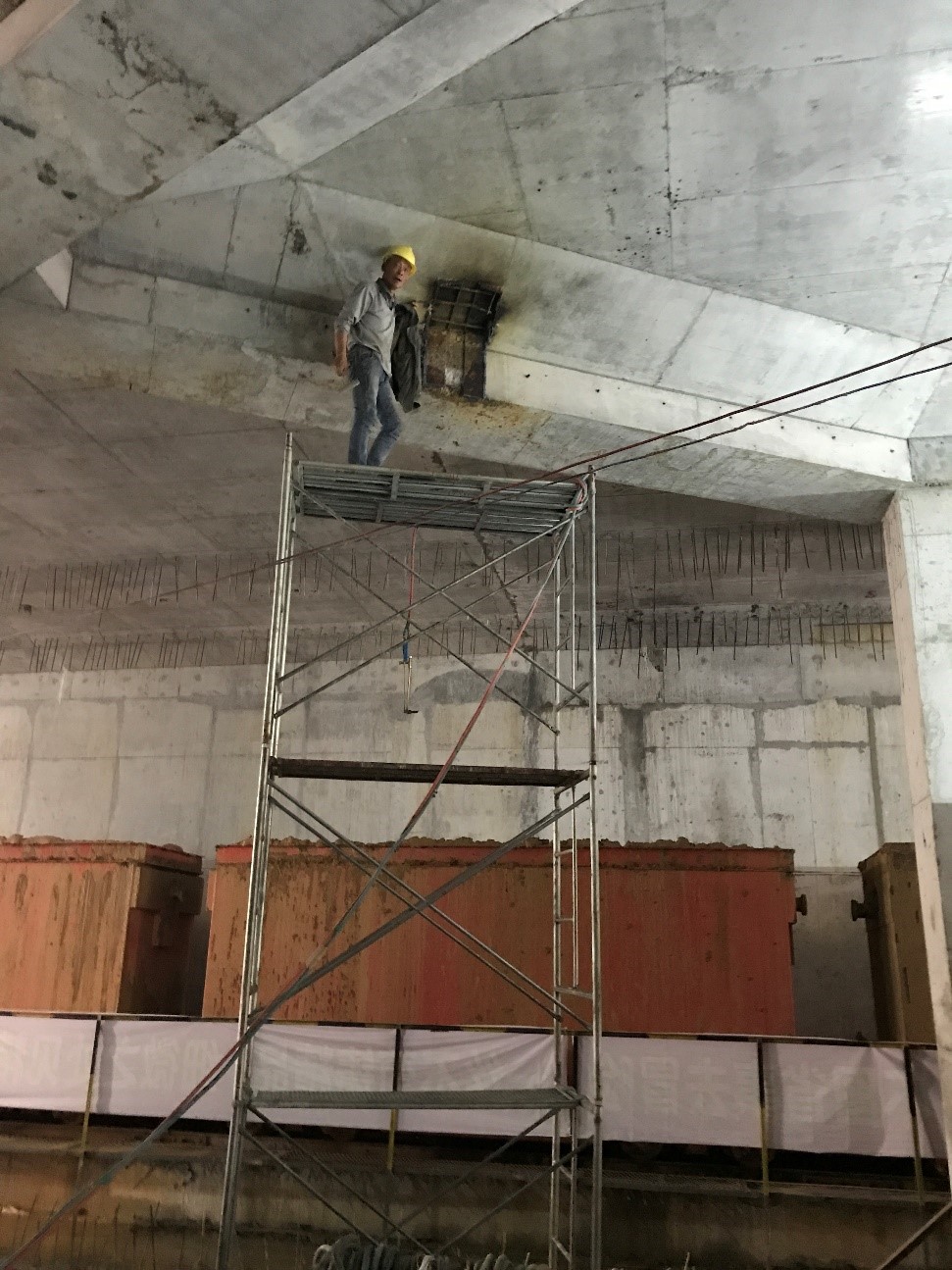 A. 电机车行走区域周边不可搭设支架进行临时立柱桩割除施工