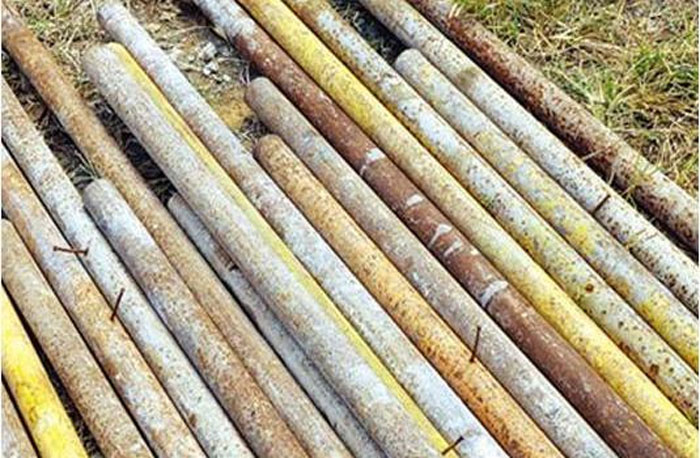 C. 钢管表面附着大量混凝土结块和泥浆,长期堆积未清理,加速钢管腐蚀且影响承载性能判断