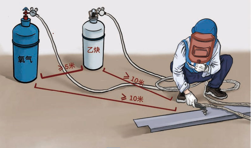 A. 乙炔气瓶与动火点应保持10m以上距离,并与氧气瓶有5m以上间距。